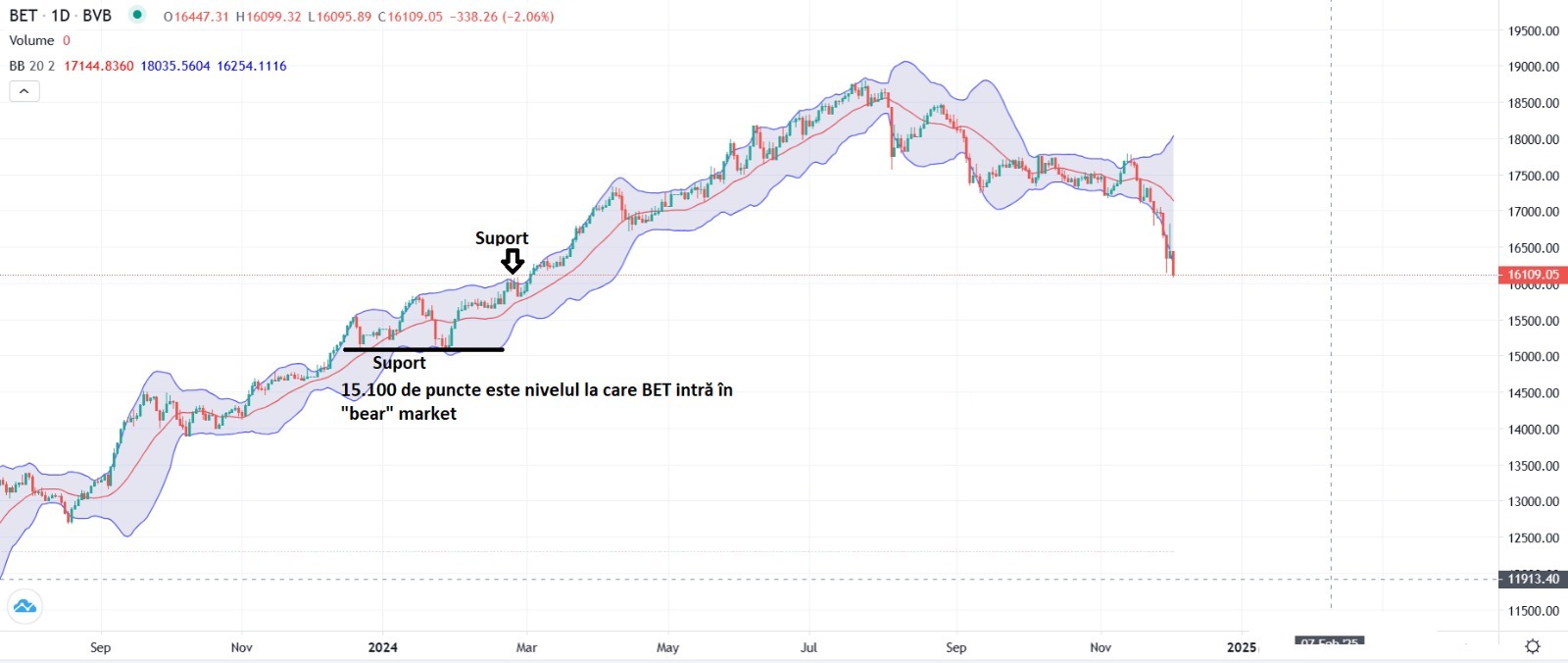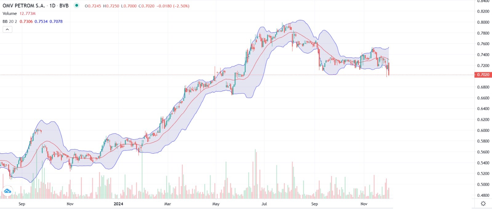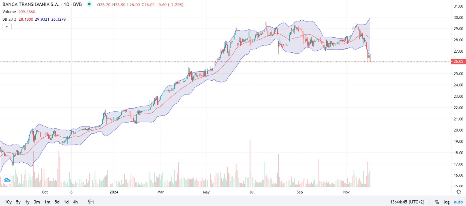 În același timp, acțiunile importante de la BVB, respectiv cele ale Băncii Transilvania și ale OMV Petrom (SNP), se bucură de o prezență solidă la cumpărare, la niveluri importante din perspectiva analizei tehnice, niveluri pe care cumpărătorii încearcă să le apere. O străpungere a acestor niveluri va accentua declinul pieței.