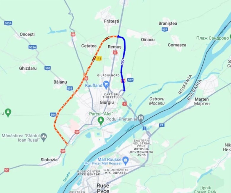 Centura Giurgiu Vest, finanțată din fonduri europene (Programul Transport 2021-2027), este licitată cu clauză suspensivă, semnarea fiind condiționată de încheierea contractului de finanțare cu Ministerul Transporturilor.