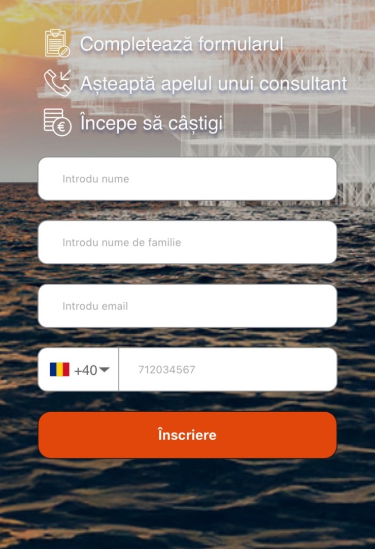Atunci când accesezi site-ul dedicat, îți este cerut să completezi un formular prin introducerea de date personale precum numele, prenumele, adresa de e-mail şi numărul de telefon.