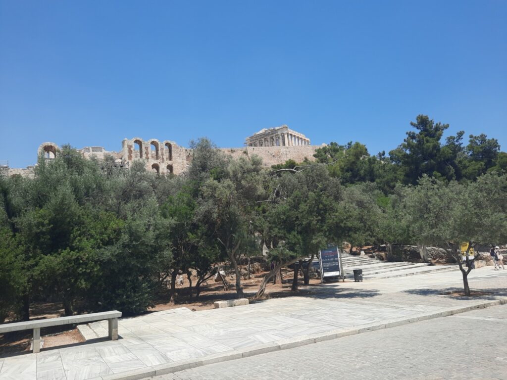 Aglomerația de la intrare și de pe treptele de acces poate fi deranjantă, dar odată ajunși pe vârful colinei puteți admira ruinele marelui templu și ale celorlalte construcții de pe Acropole și puteți admira panorama Atenei cu clădirile sale piatră albă.