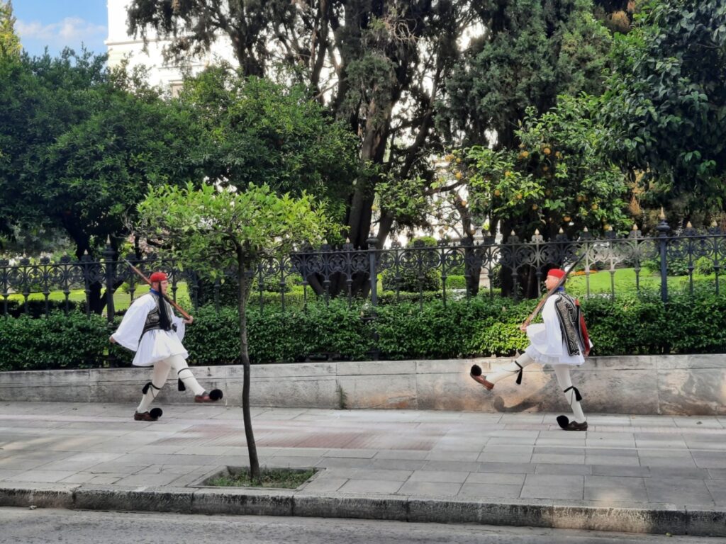O altă atracție o reprezintă santinelele de la Mormântul soldatului necunoscut, în fața parlamentului Greciei din Piața Sintagma și de la Palatul Prezidențial, în uniformă tradițională, cu fustanelă și saboți. Militarii fac parte din unitatea de infanterie Evzones și ritualul patrulării lor face deliciul turiștilor.