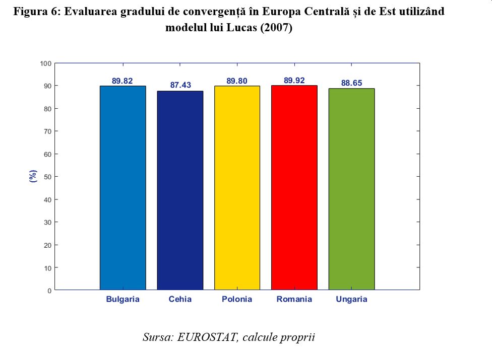Calibrând modelul lui Lucas rezultă un parametru de integrare de aproximativ 0,8992. Acesta indică faptul că România asimilează, în medie, aproximativ 90% din beneficiile apartenenței la Uniunea Europeană, referindu-ne aici la tehnologie, productivitate, fonduri europene sau investiții străine directe.
