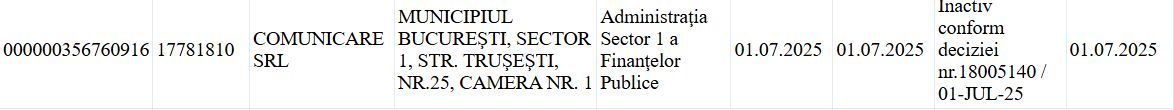 Comunicare SRL a devenit societate comercială inactivă, din 1 iulie 2025, conform datelor prezentate pe site-ul ANAF.