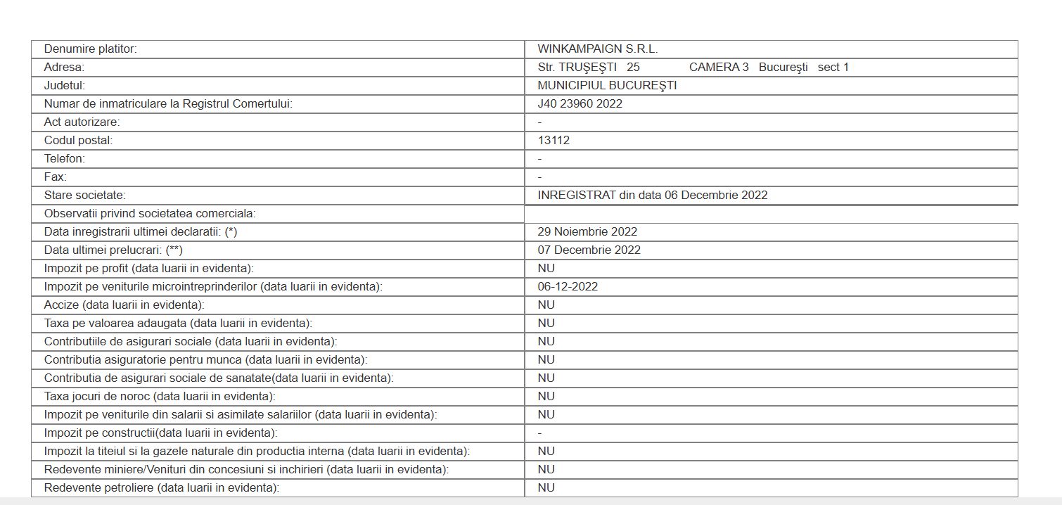 Winkampaign, firmă înregistrată în 2022, nu are declarații depuse la Ministerul Finanțelor în 2023 și 2024.