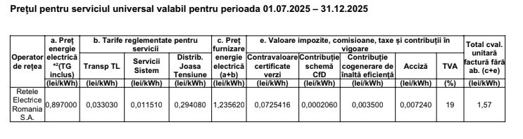 Această informare este trimisă în baza Ordinului ANRE nr. 13/2023 pentru aprobarea Contractului-cadru de furnizare a energiei electrice în regim de serviciu universal, a condiţiilor generale de furnizare a energiei electrice în regim de serviciu universal şi a modelului de factură aplicabil clienţilor casnici, şi cuprinde prețul aplicabil în perioada 01.07.2025 – 31.12.2025”, se arată în informarea trimisă de PPC clienților.