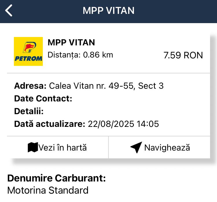 Vineri, 1 august, la câteva minute după miezul nopții, noile prețuri de la stația Petrom Vitan erau: 7,37 lei pentru benzina standard și 7,81 lei pentru motorina standard, potrivit Monitorul Prețurilor.